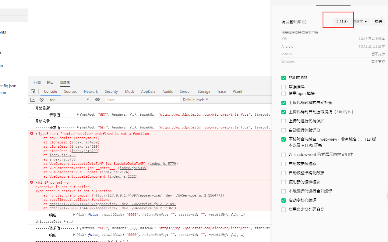 为啥基础库版本为2.11.3调用createInnerAudioContext会报错