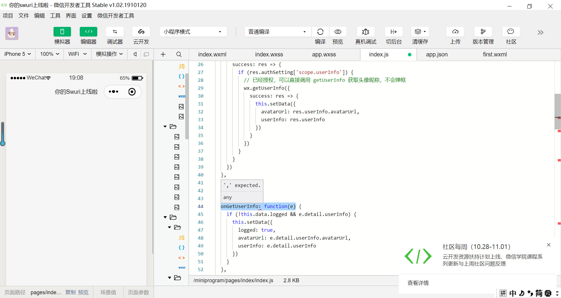 ……唉,你这个函数的上一行少了 ‘,’ ,不是这一行的锅