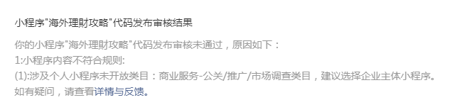个人主体的小程序提交审核,结果是