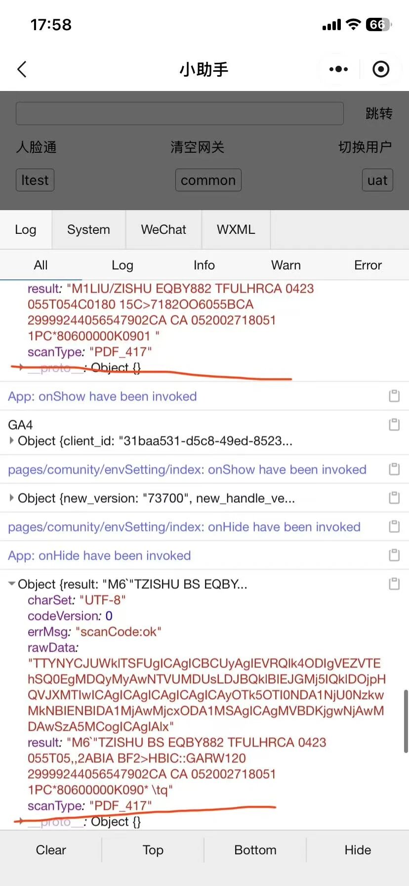 在iOS端微信小程序内调用wx.scanCode拉起扫一扫扫描截图1登机牌,扫描结果有时会出现异常的情况(截图2中上面是正确,下面异常)。但是相同的同一个条码在同一台iOS设备上调用原生系统API扫一扫结果都是没问题的 ,麻烦帮忙排查下