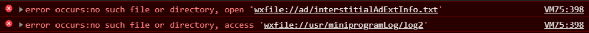 uniapp微信小程序在模拟器上没有任何问题,在我自己真机调试也没有任何问题,当我把它上传为体验版后 同事去扫码体验结果什么请求都不发 数据也没有,让同事扫码真机调试的时候发现报 1.error occurs:no such file or directory, open 'wxfile://ad/interstitialAdExtInfo.txt' 2.error occurs:no such file or directory, access 'wxfile://usr/miniprogramLog/log2'这两个错误 根本就没走到onload里面的请求,请大神们帮忙看看