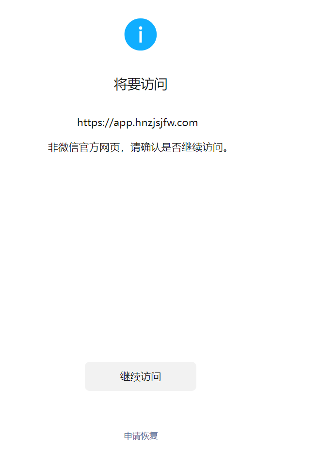 社区技术专员,您好,公司网站(app.hnzjsjfw.com),在微信里访问会提示无法确认网页安全性,请确认是否继续访问。