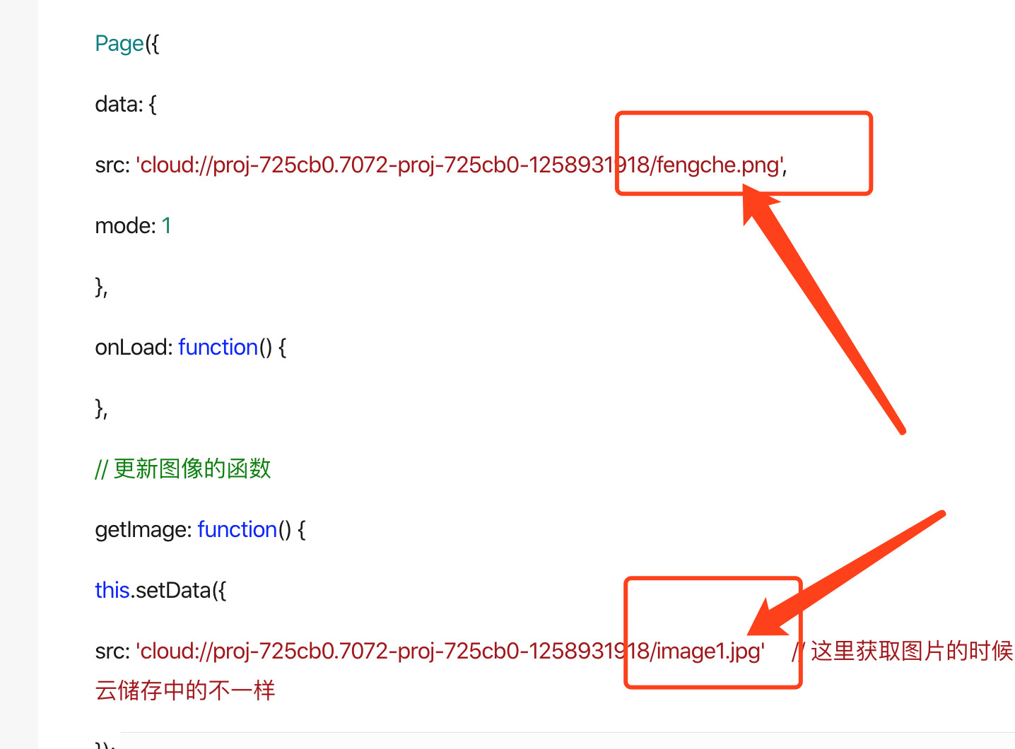 src: 'cloud://proj-725cb0.7072-proj-725cb0-1258931918/image1.jpg' // 这里获取图片的时候,获取的与云储存中的不一样