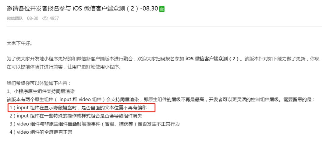 针对官方众测后的问题,红色标记问题仍然存在,但问题是偶发的,现在只针对IOS微信端发现该问题,Android暂未发现。