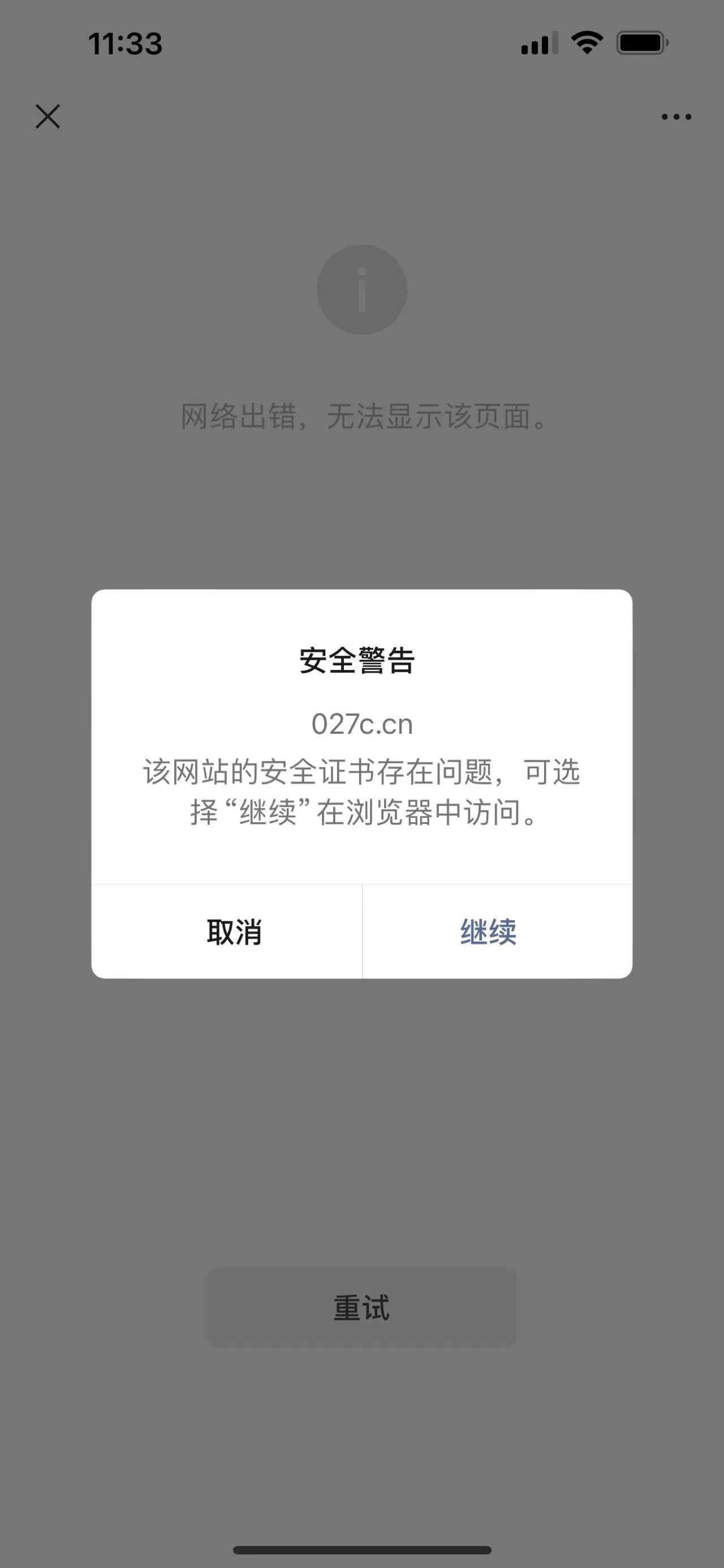 PS:之前用的免费版的https安全证书 国内企业有签约 微信苹果内核是用的Safari内核 苹果没签约 换了个付费的证书 现在苹果也好了