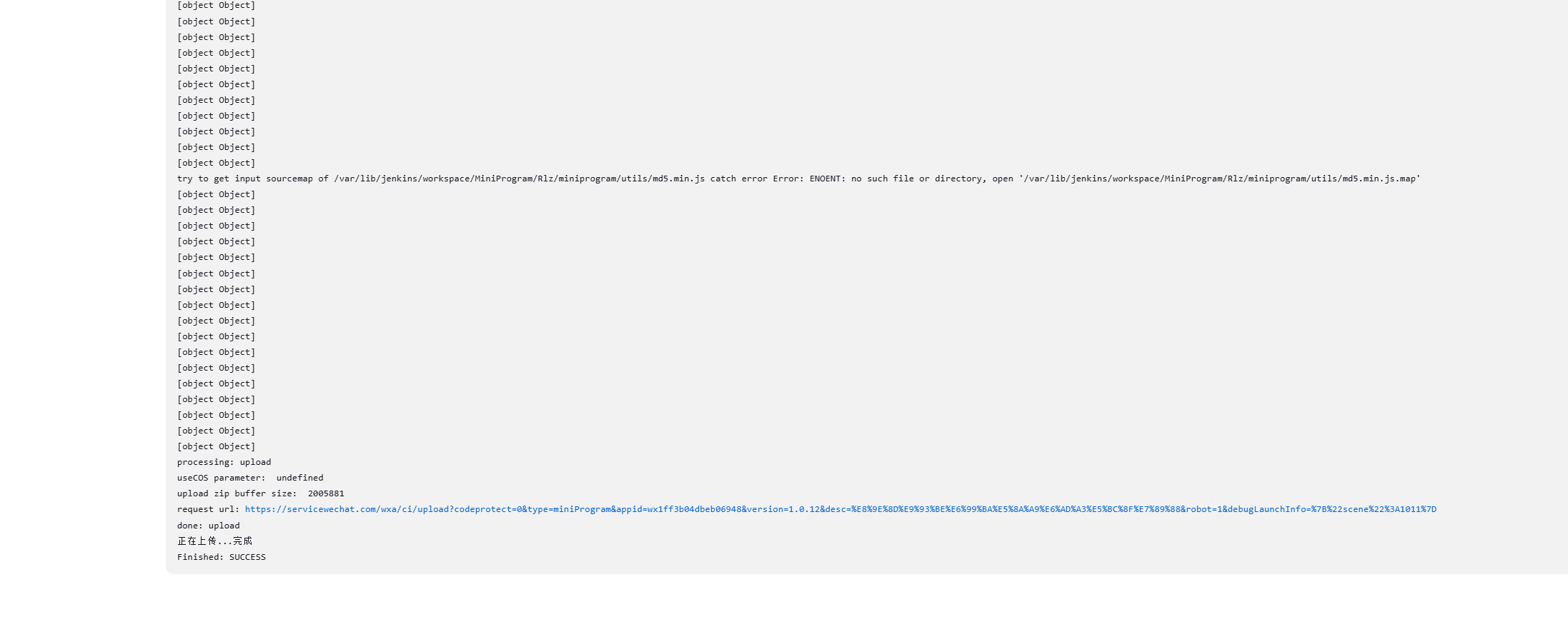 2.微信小程序开启sass,使用微信开发工具打包上传没问题,使用CI工具打包就会报错,打包的内容也全为[object,Object]
