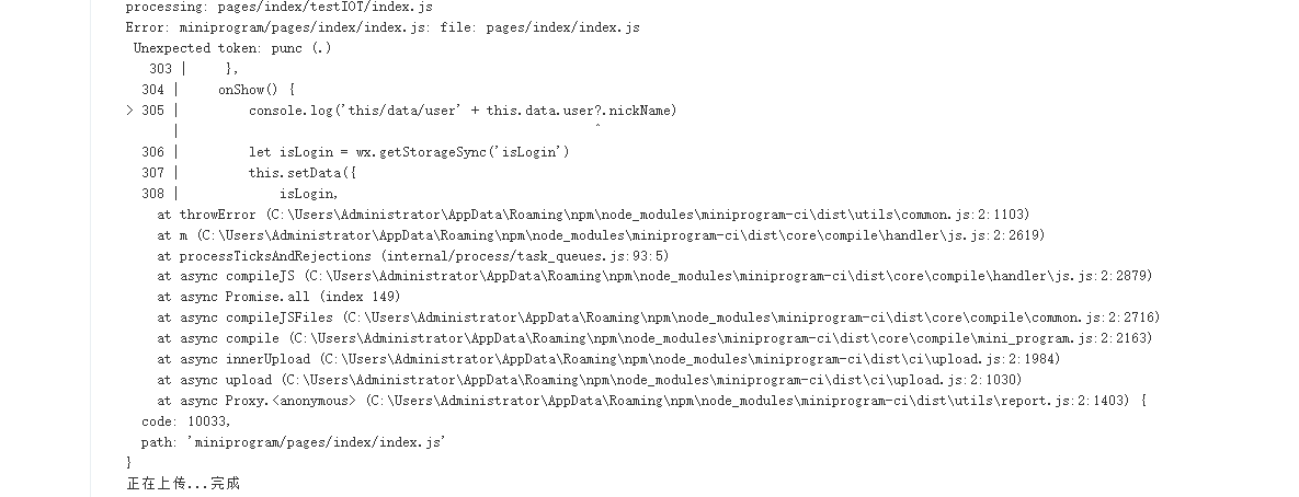 1.微信小程序使用可选链?.,如this.data.user?.nickName在微信开发工具打包上传没问题,通过CI工具打包就会报错