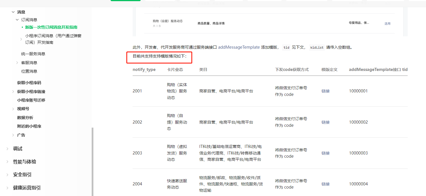 1.新版一次性订阅消息支持的模板情况只有文档里的100x-20xx吗?还是公共模板里的一次性订阅消息里选用的模板也支持?