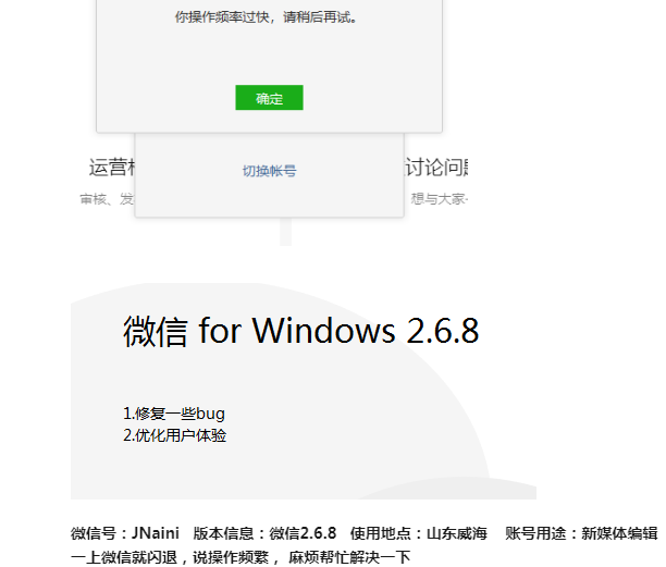 微信PC端频繁闪退,显示“你操作频率过快,请稍后再试”