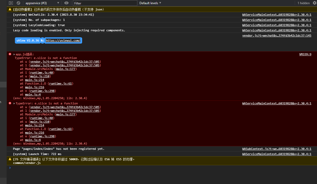 你输出一下 e 是什么,这个应该是你代码里面写的吧