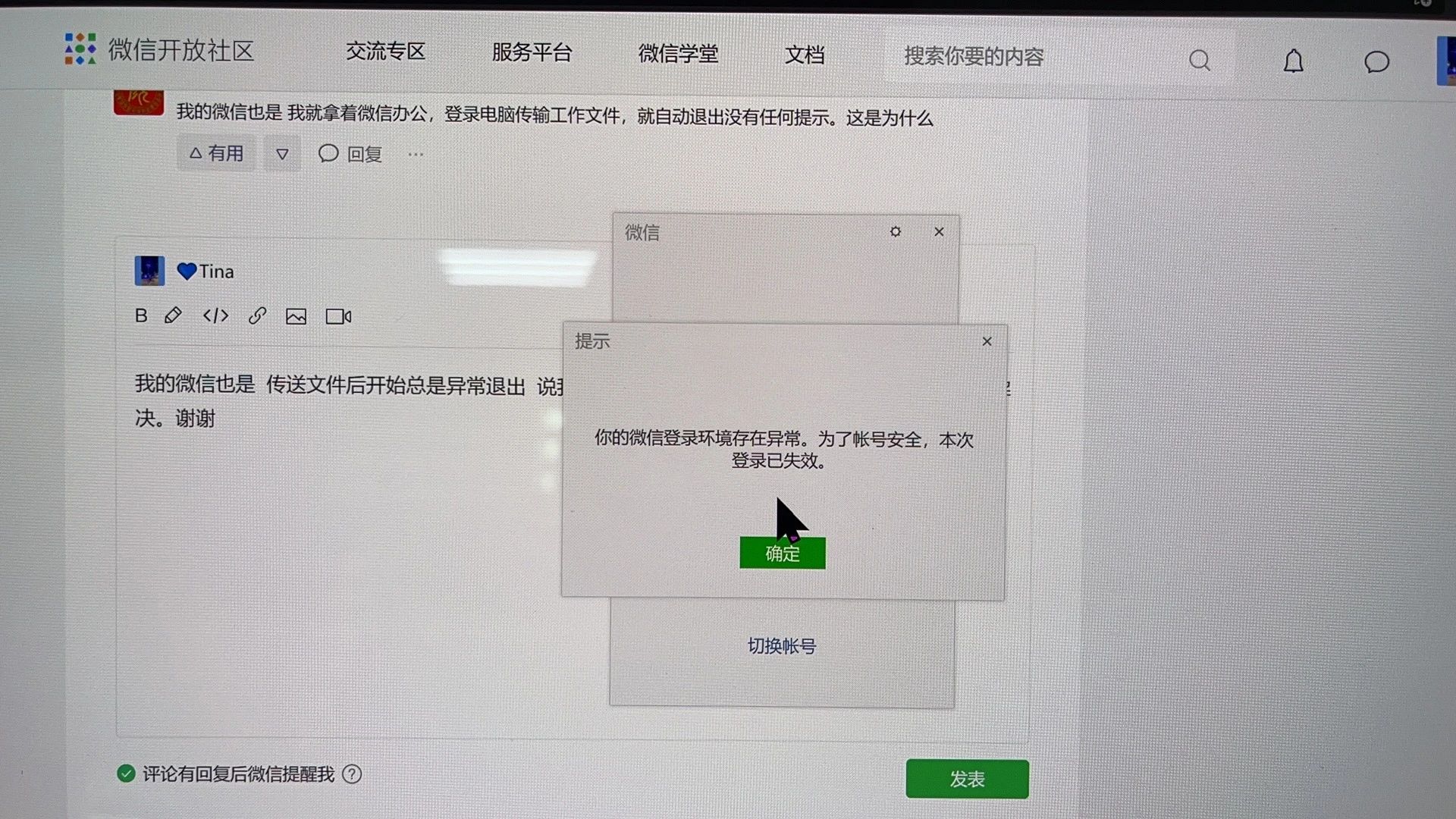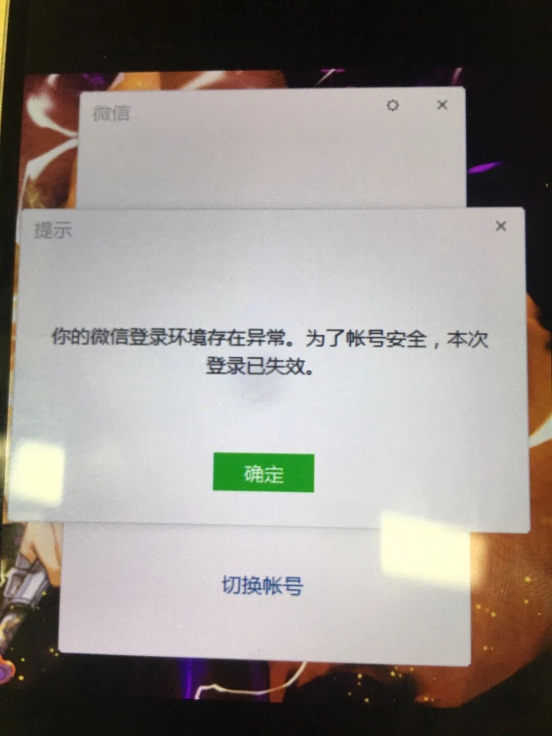 微信在电脑上登陆的好好的,跟别人发了几条信息后就弹出了(你的微信登陆环境存在异常。为了账号安全,本次登陆已失效)