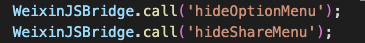 代码是这样写的,设置了隐藏菜单和分享。