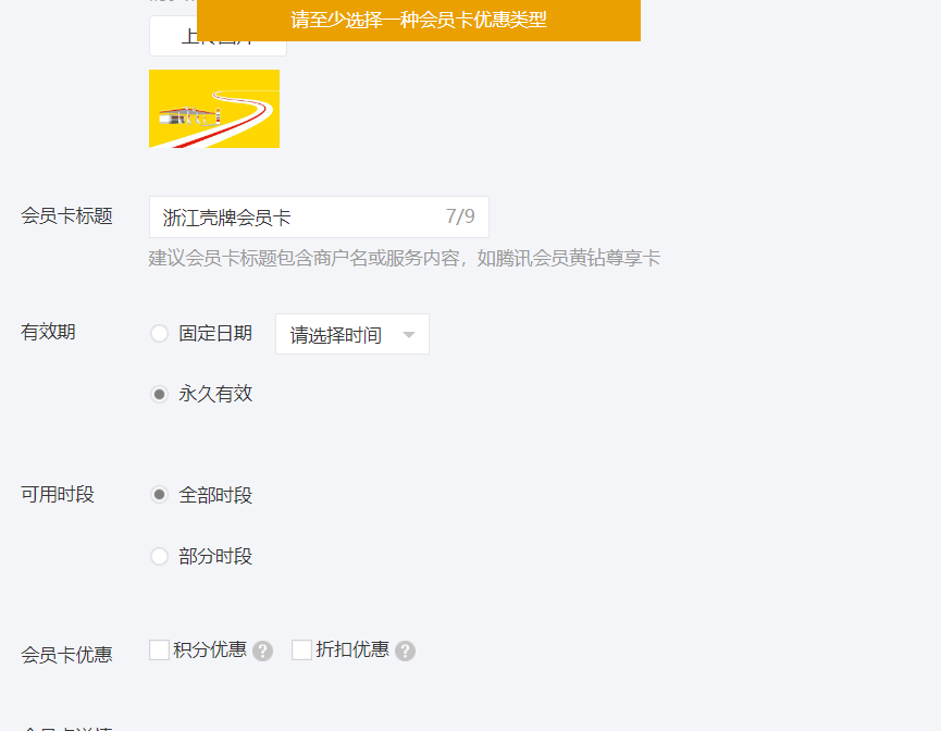 很久之前设置的会员卡,现在修改会员卡时,必须要让我选会员卡优惠类型。是积分优惠还是折扣优惠