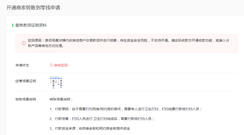 看驳回原因涉及代收代付了
