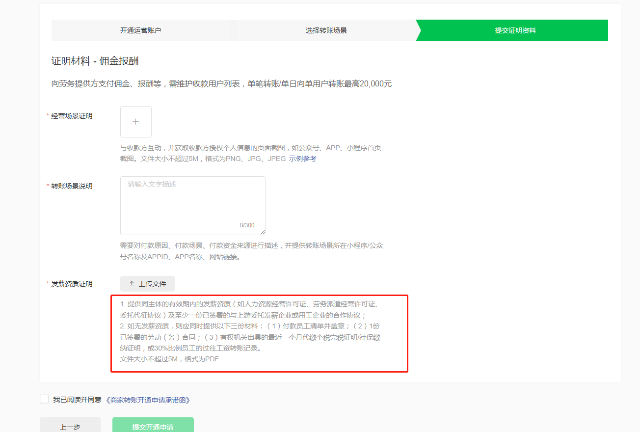 如果你们做的是SaaS软件,给民宿独立使用,就用民宿的单位主体商户号来申请“商家转账到零钱”;材料https://gtimg.wechatpay.cn/resource/xres/img/202211/4d75c60a70b2f5a99ee81ad8ce1c8907.pdf