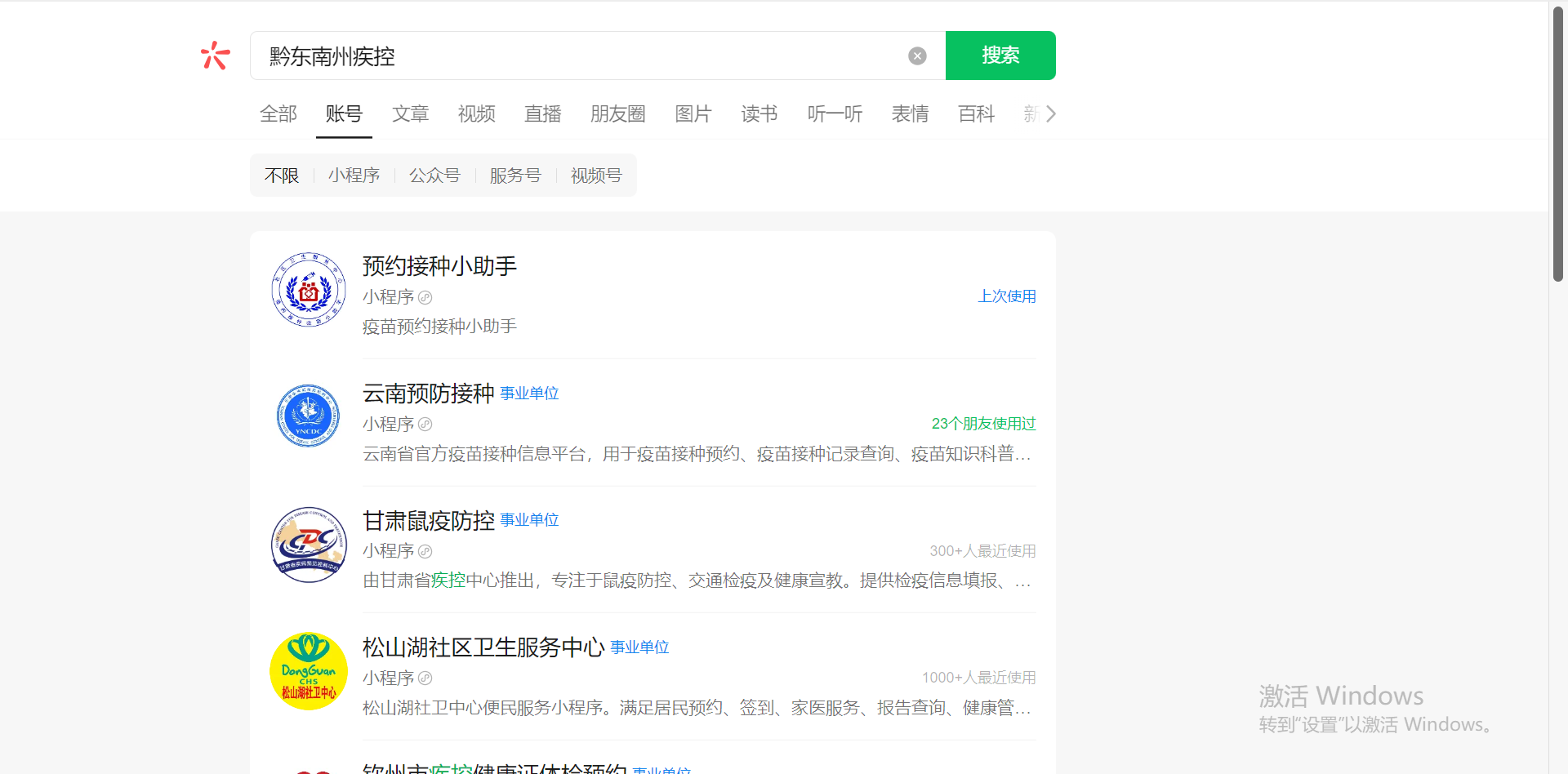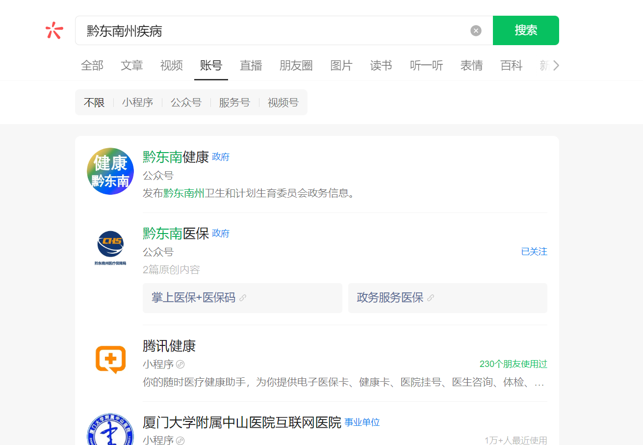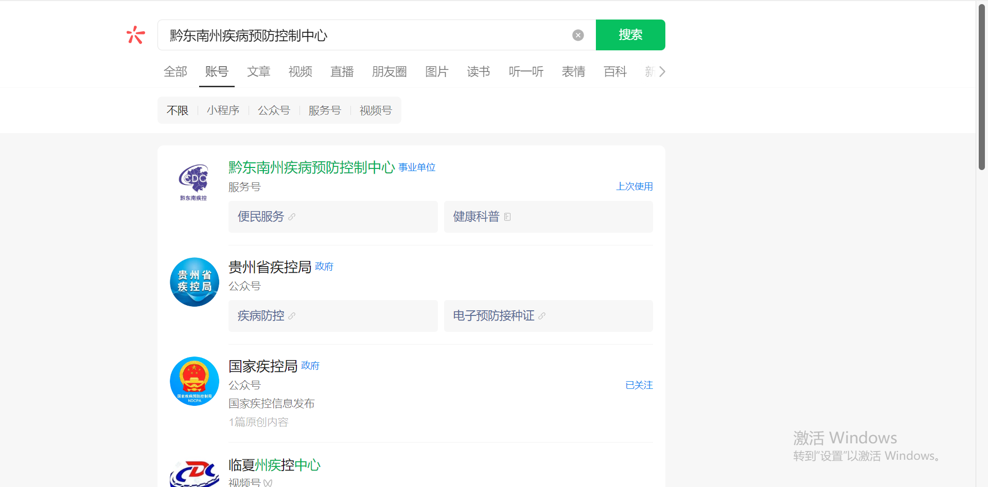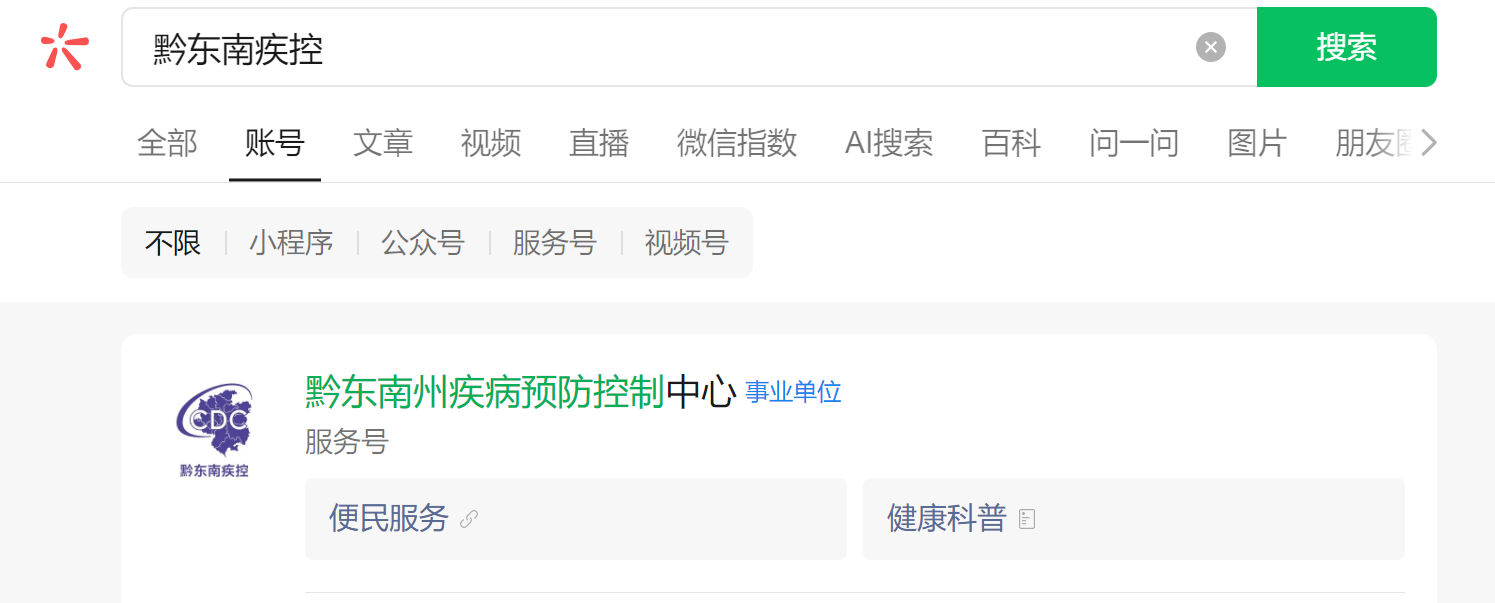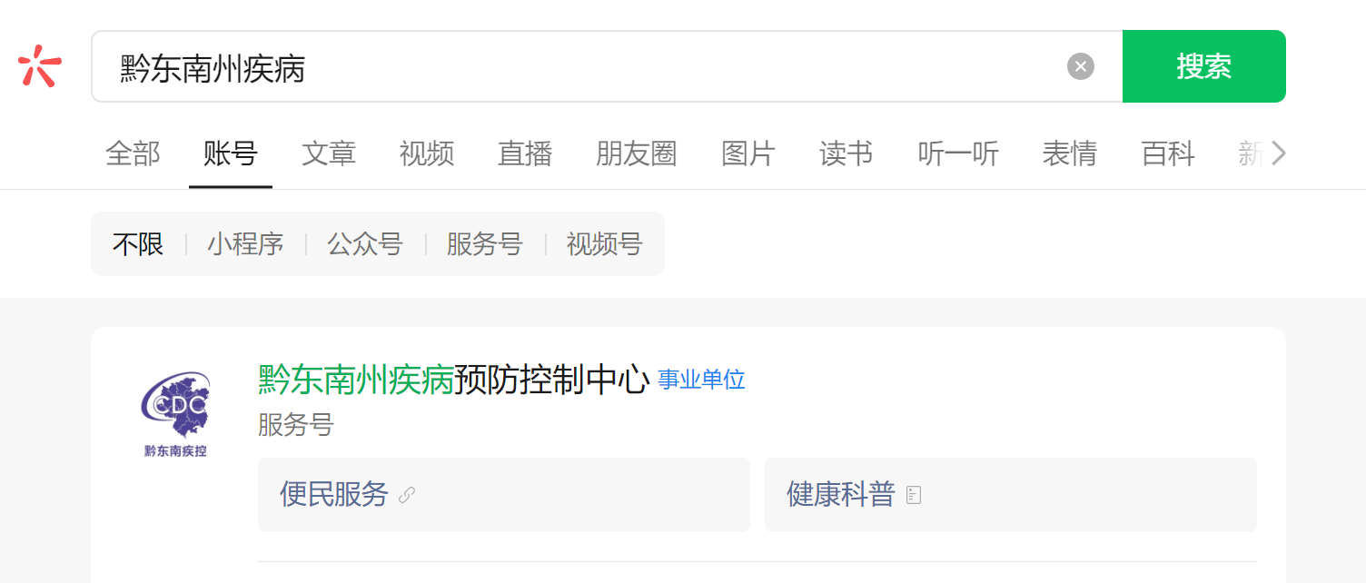 搜一搜搜不到黔东南州疾控公众号,要全称才可以。