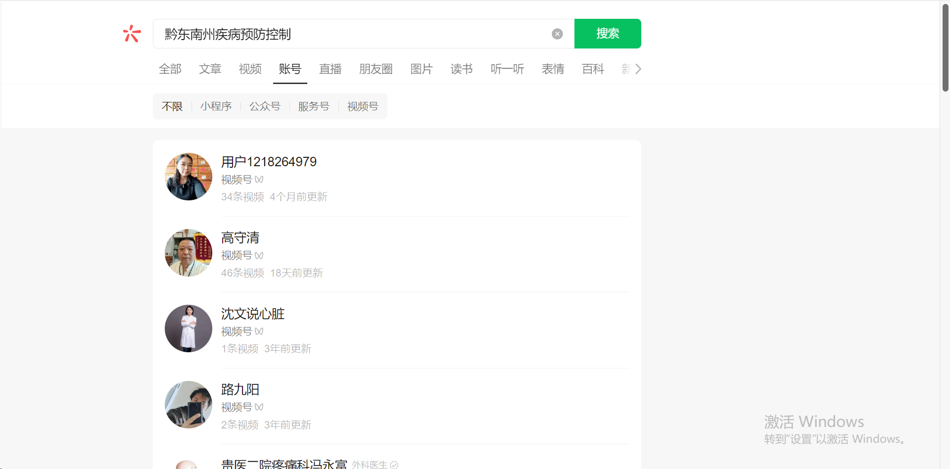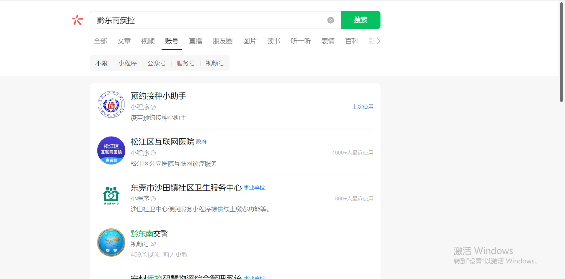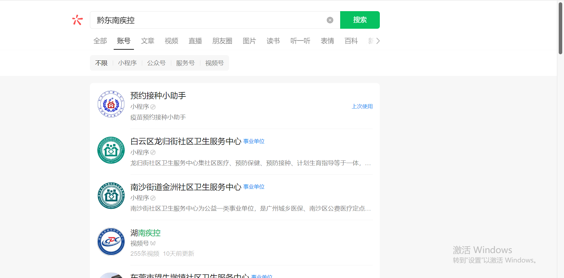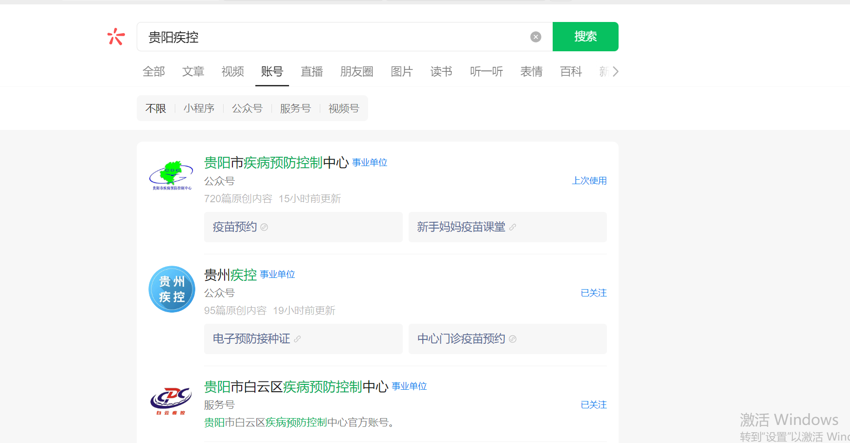 搜一搜搜不到黔东南州疾控公众号,要全称才可以。