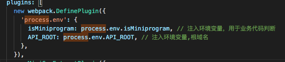 尝试在webpack.mp.config.js中如下添加API_ROOT,小程序端可以console获取到process.env.isMiniprogram,但获取不到process.env.API_ROOT