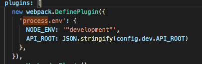 在webpack.dev.config.js中如下添加API_ROOT,web端页面可以console获取到process.env.API_ROOT