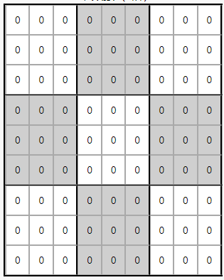 <viewclass='table'><viewwx:for='{{9}}'wx:key='index'class='section {{index % 2 == 1 ? "d" : ""}} {{index % 3 == 2 ? "right" : ""}} {{index >= 6 ? "bottom" : ""}}'><viewwx:for='{{3}}'wx:key='index'class='tr'><viewwx:for='{{3}}'wx:key='index'class='td'>0</view></view></view></view>.table {margin-left:20px;margin-top:20px;width:276px;/*每个小元素30x9=270+section的外边宽度*/display: flex;flex-wrap: wrap;border-left:4pxsolid#333;border-top:4pxsolid#333;}.section {display: flex;border-right:1pxsolid#333;border-bottom:1pxsolid#333;}.section.right{border-right:4pxsolid#333;}.section.bottom{border-bottom:4pxsolid#333;}.section.d {background-color:#ccc;}.td {font-size:11pt;width:30px;height:30px;text-align:center;line-height:30px;border-right:1pxsolid#666;border-bottom:1pxsolid#666;box-sizing: border-box;}so easy!~