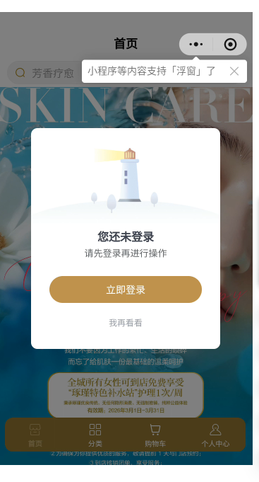 小程序打开一进入页面,未浏览体验功能服务,即要求授权手机号码、头像、昵称进行授权登录,请在用户体验浏览功能服务后,再自行选择授权登录。请整改后再提交审核。