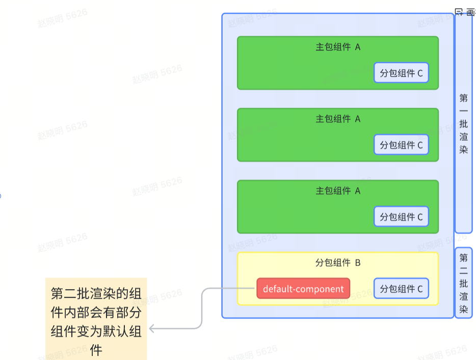 描述: 一个分页加载的列表,子 item 中有 主包组件 A 和 分包组件 B 这两个组件都引用了 分包组件 C,当分包组件 B 处于列表的第二页时,内部会有部分组件变为 default-component
