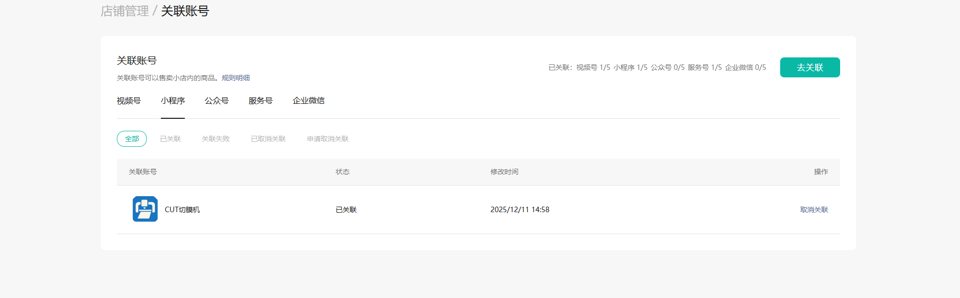 小程序与小店的关联信息: