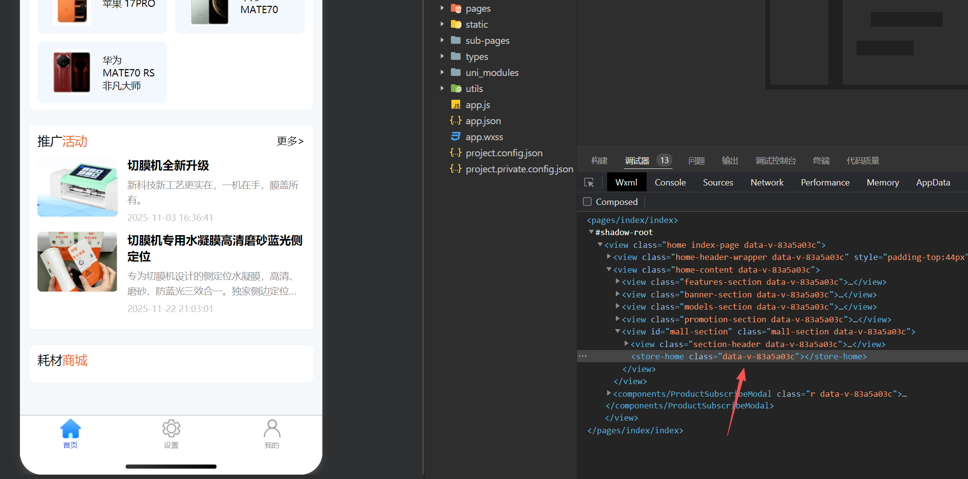 问题描述:使用store-home组件无效。