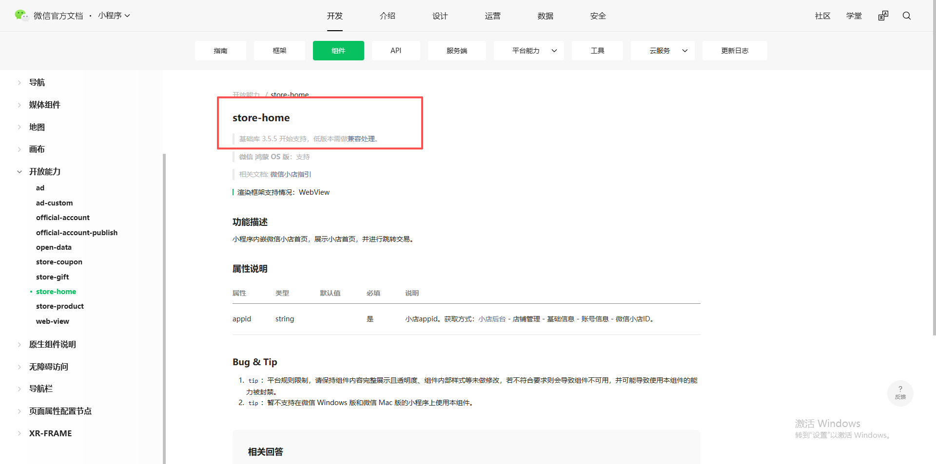 对应文档:https://developers.weixin.qq.com/miniprogram/dev/component/store-home.html