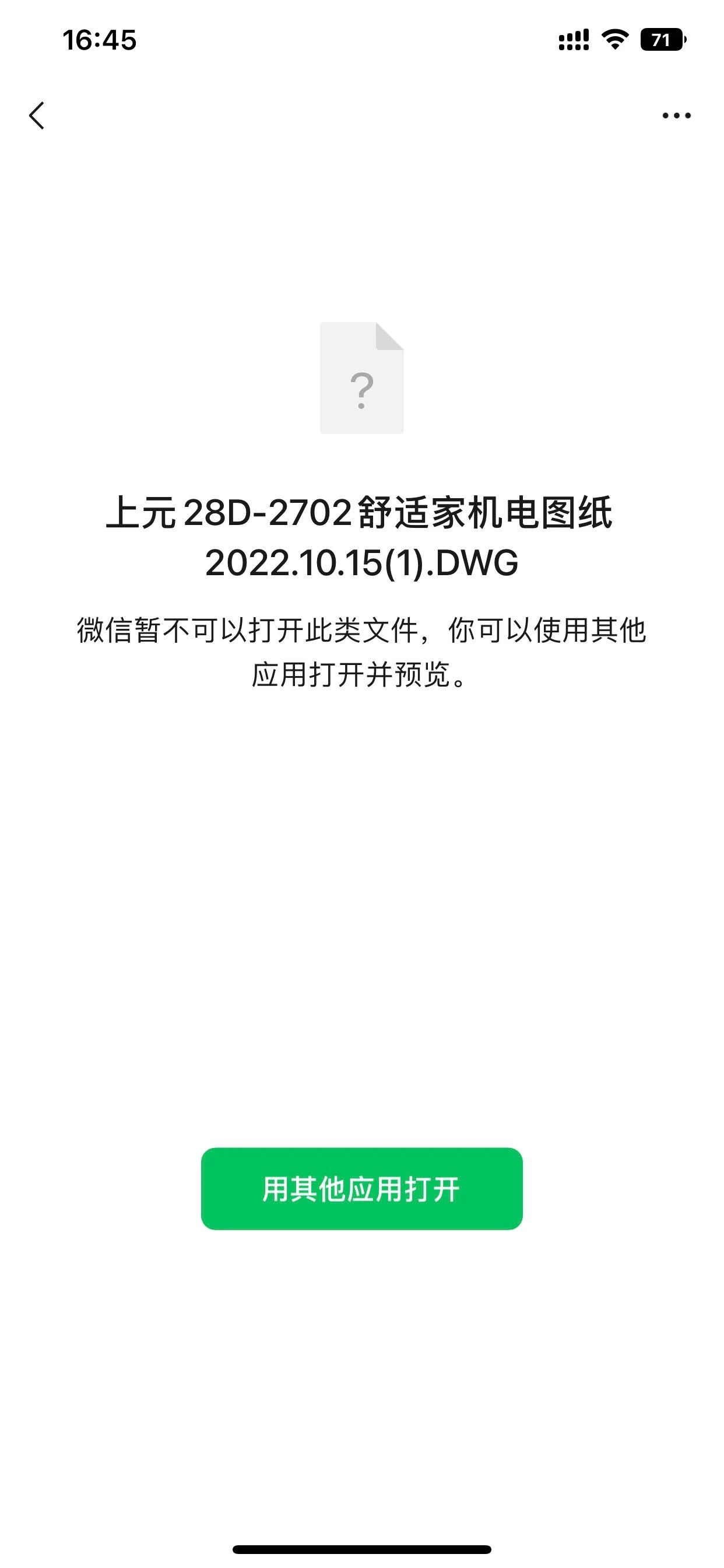 在微信里,如果打开微信自带功能打不开的文件,如CAD的DWG格式的文件,它会进入这个页面: