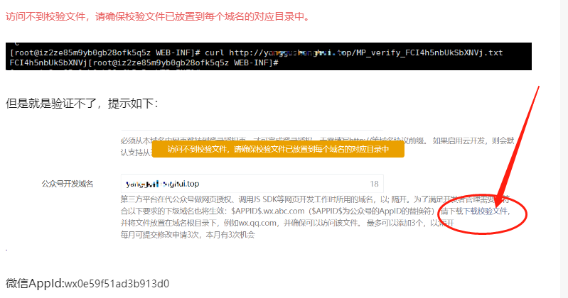 访问不到校验文件,请确保校验文件已放置到每个域名的对应目录中。