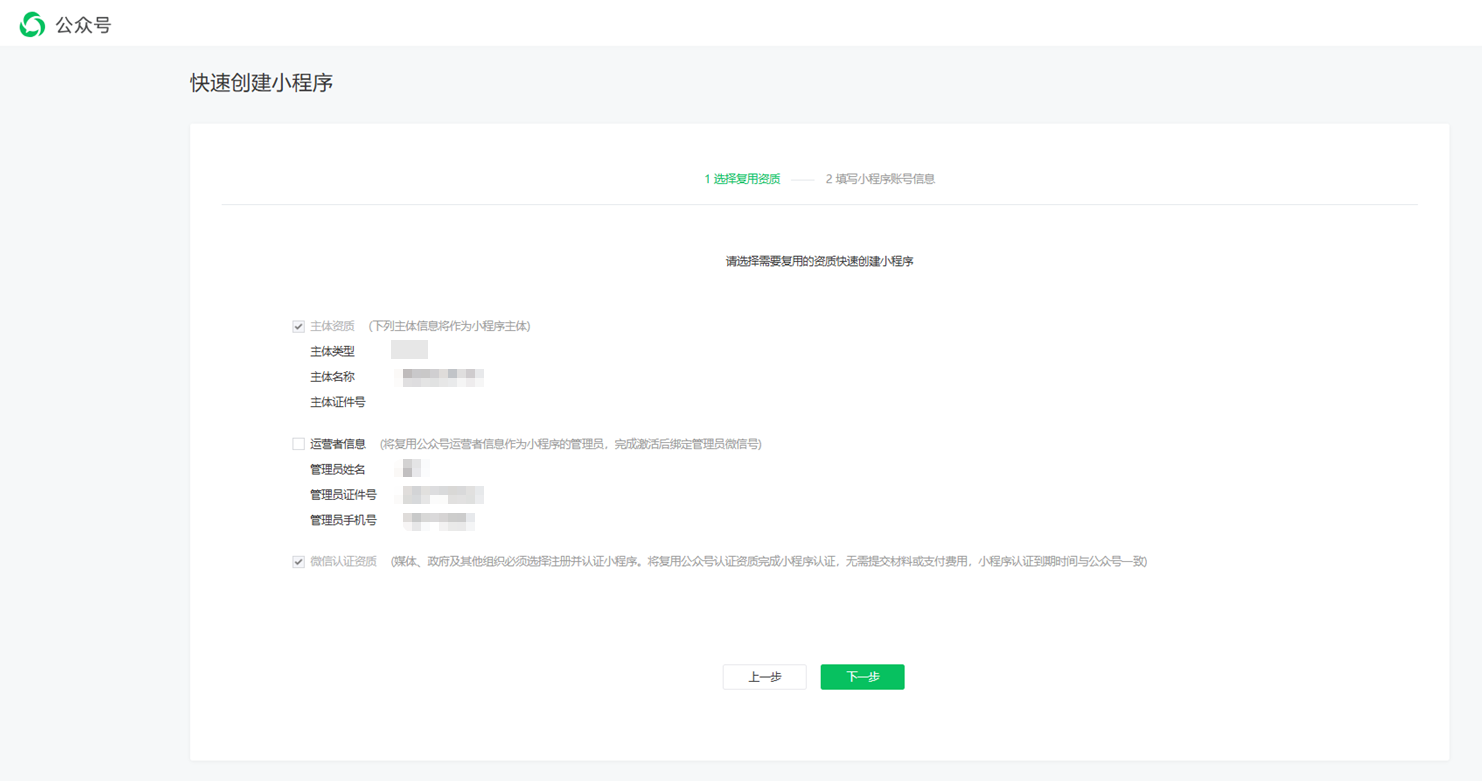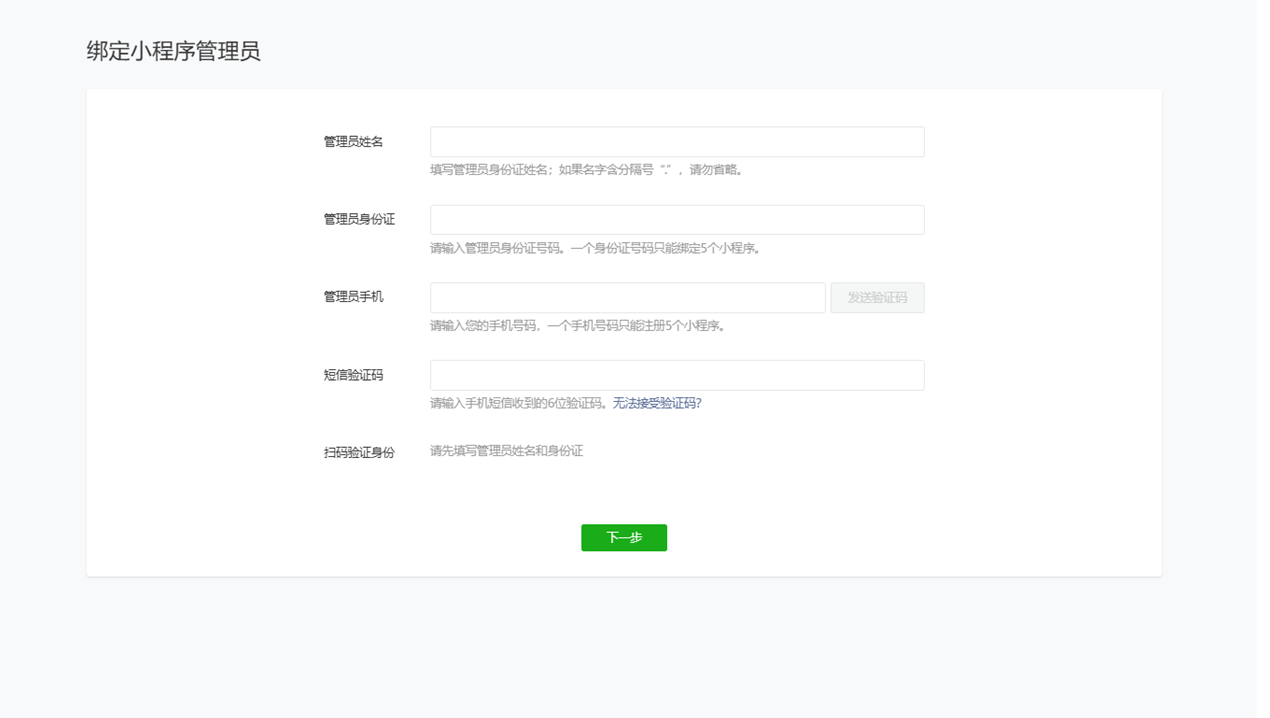 如不复用运营者信息,后续登录小程序时需绑定管理员