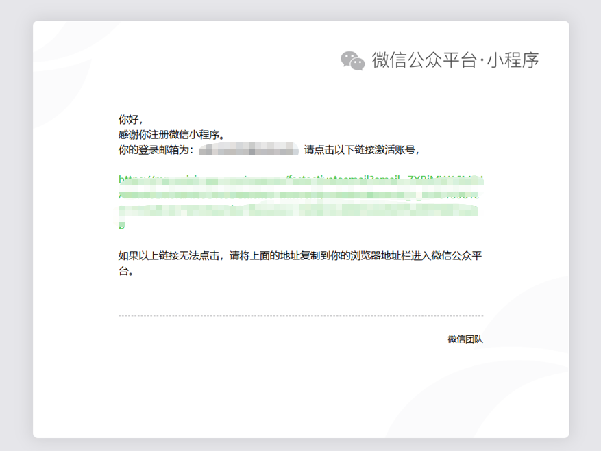 第六步:邮件激活小程序账号,激活完成后即可使用邮箱账号密码登录小程序。