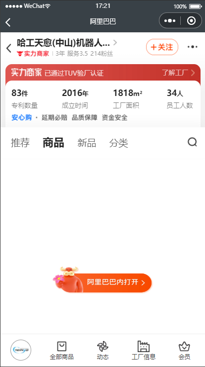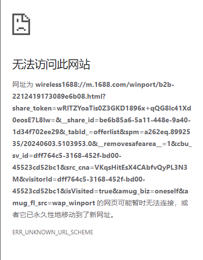 我公司在阿里的1688上开了一个店,现在在小程序上添加一个按钮可跳转到1688的移动端网址。但是进去后先展示出了网页过后一秒就报无法访问此网站。