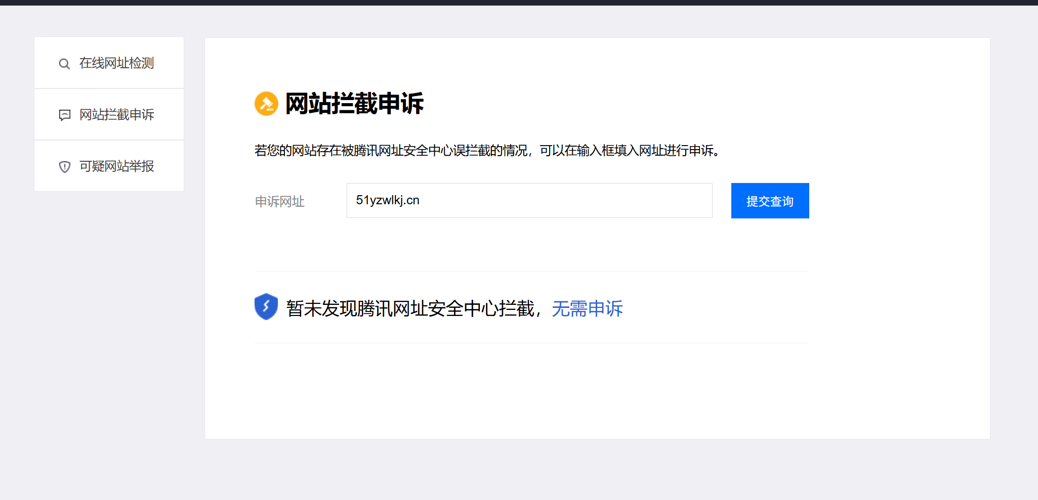 尊敬的审核人员,51yzwlkj.cn已经备案,1月17日做的解析,合法合规的网站,在微信中访问,10分钟后就出现了, 提示 “已停止访问该网页,网页存在安全风险,为维护绿色上网环境,已停止访问”,当时国家备案中心网站也在维护中,无法访问,联系了腾讯的技术人员,全面的检查也删除了全部都解析,不存在任何安全问题,但是现在还是有提示,腾讯的工作人员告知存在错误拦截,要我在开放平台进行申诉,请求审核人员核查,尽快删除错误提示,能够正常访问,非常感谢。 已经5天过去了,没有任何反馈。