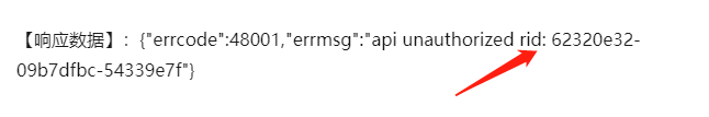 【响应数据】:{"errcode":48001,"errmsg":"api unauthorized rid: 62320e32-09b7dfbc-54339e7f"}