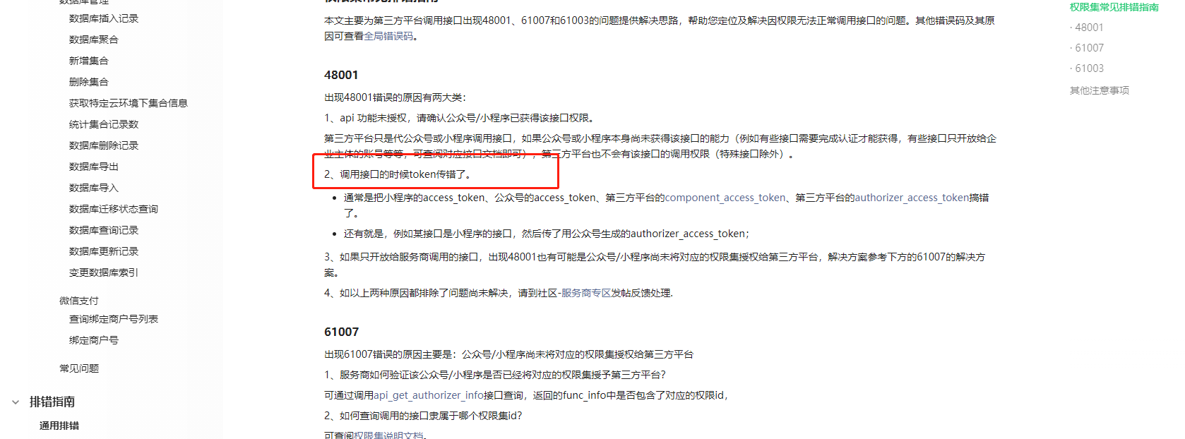 后续遇到此类错误可先根据权限集排错指南https://developers.weixin.qq.com/doc/oplatform/Third-party_Platforms/Before_Develop/third_party_authority_instructions_troubleshooting.html自行排查哈~