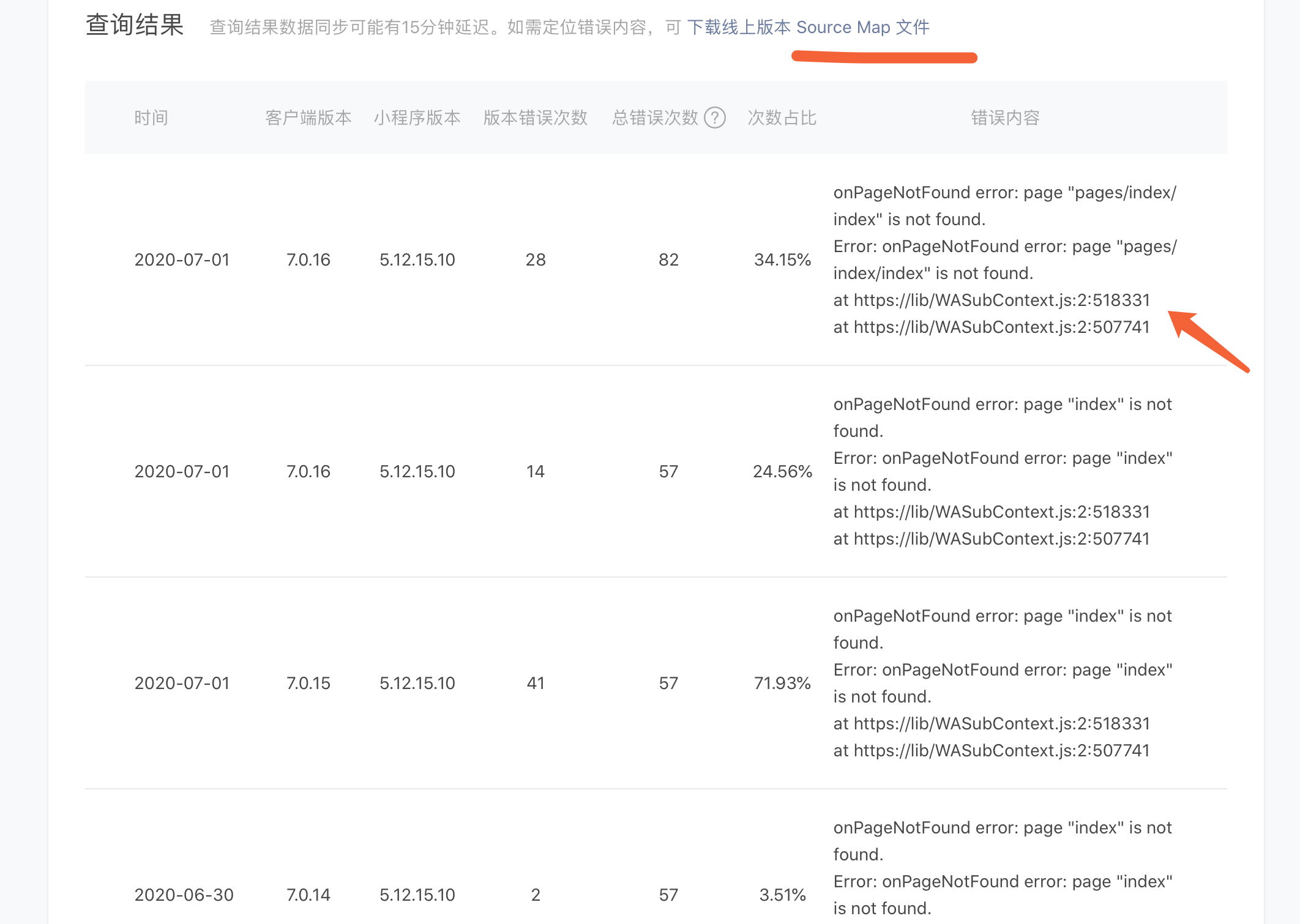 从后台的数据监控,发现 客户端版本号 7.0.16 和 7.0.15 出现这个问题的情况比较突出