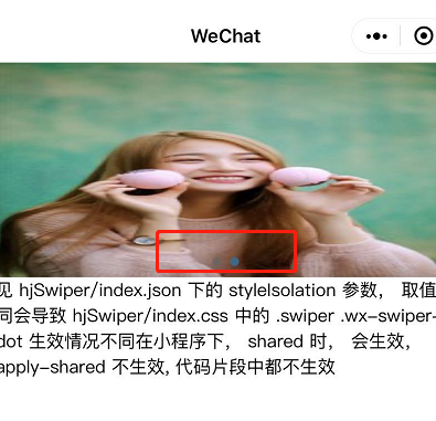 在自定义组件中,如果styleIsolation 值 为 shared ,那么组件内可以通过 .wx-swiper-dot 来修改小圆点的样式;