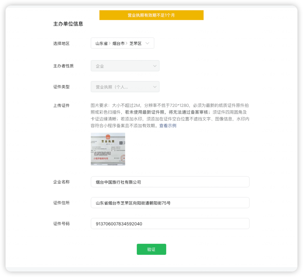 小程序备案,提示营业职照有效期不足一个月,但是企业公示系统已经进行更新过了