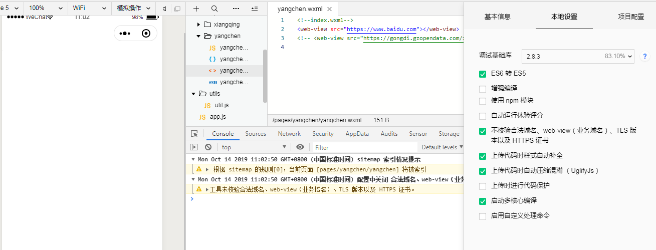 之前版本嵌的webview网页(已配置业务域名)是可以的。 现在问题是浏览器可以访问网页,但是开发工具webview访问是空白的,然后我试了下不校验合法域名,src写baidu,依然空白。