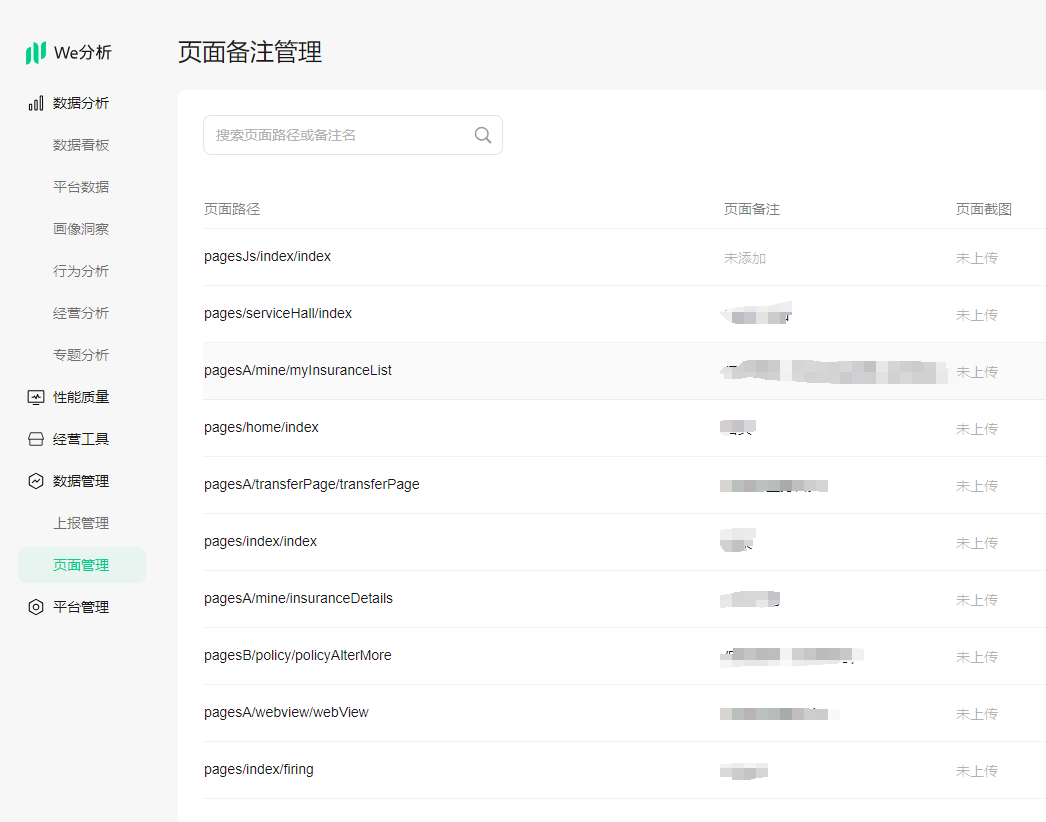 小程序微信公众平台中的we分析--数据管理--页面管理中,只有部分小程序页面在这里,还有很多其它的页面都在这里找不到,同时在页面分析里也没有。