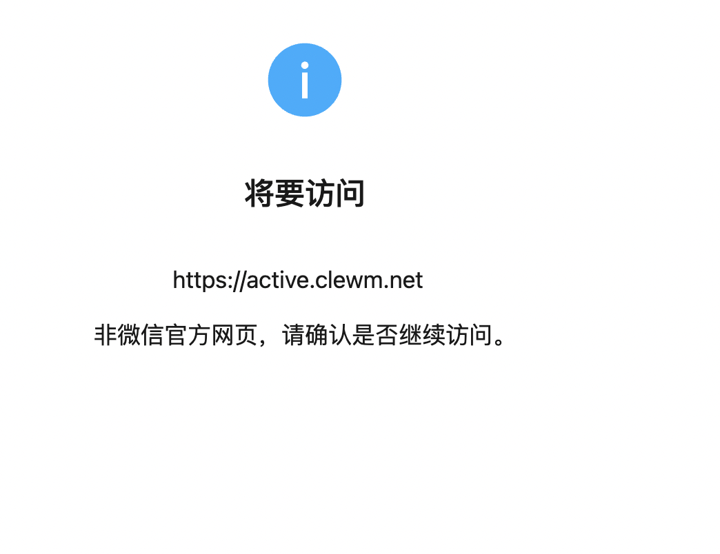 我司域名【active.clewm.net】,从微信端访问时提示”非微信官方网页,请确认是否继续访问”