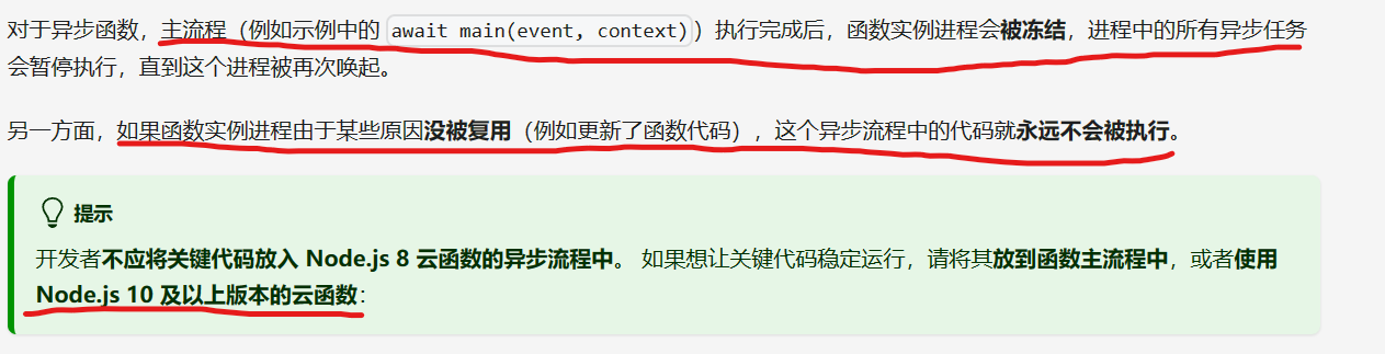 按文档描述,云函数并不是执行完就立马销毁,似乎云函数内可以执行一些短期的异步任务?