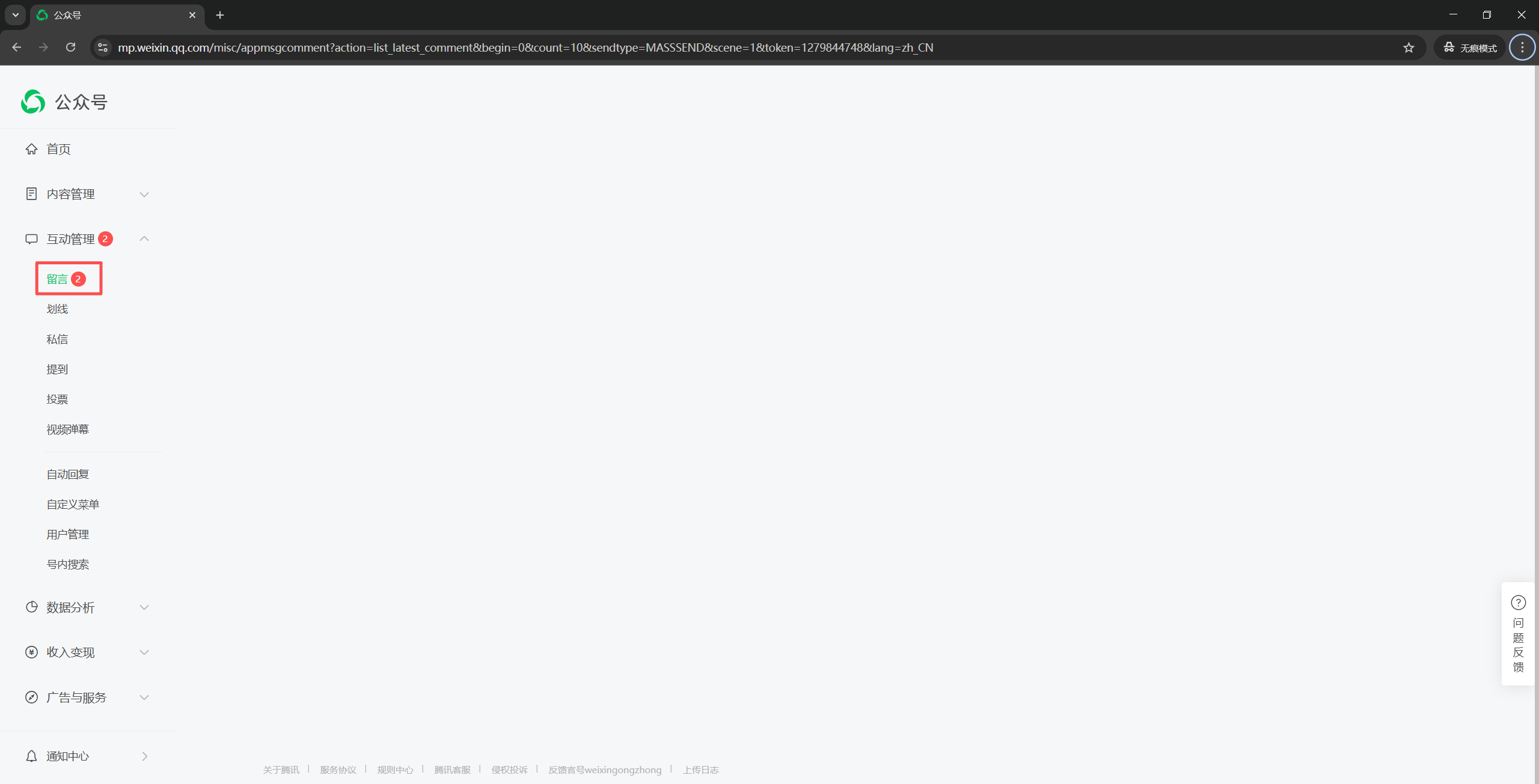 公众号留言页面加载失败,尝试了谷歌无痕模式进入,更换浏览器edge、QQ、360等,以及关闭浏览器插件,留言页面都加载不出来。
