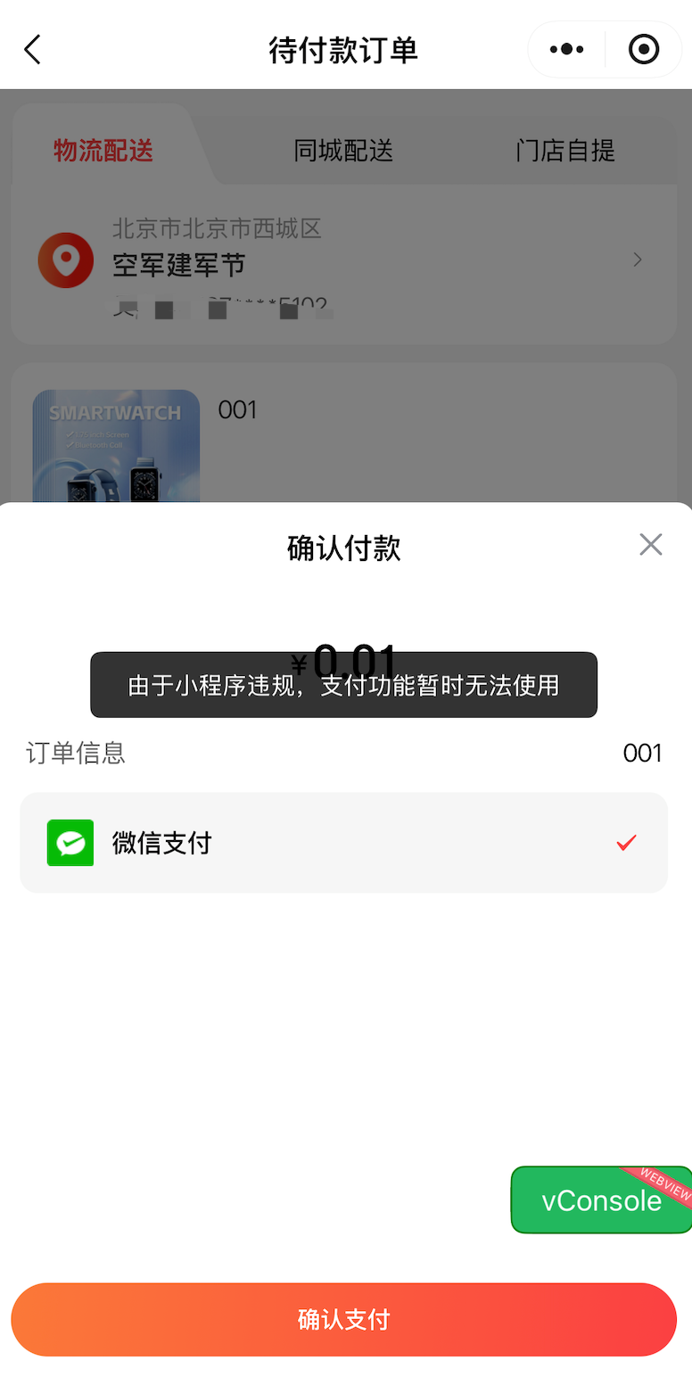 微信小程序调用微信支付时,提示“由于小程序违规,支付功能暂时无法使用”,查看违规记录,并未发现有违规信息。而且小程序都还没上线,目前还在调试中。怎么就违规了呢?