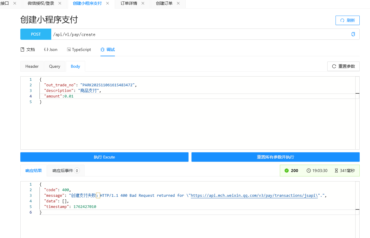 仔细看官方文档,传参时候 金额的单位是分 ,1代表1分,不支持0.01
