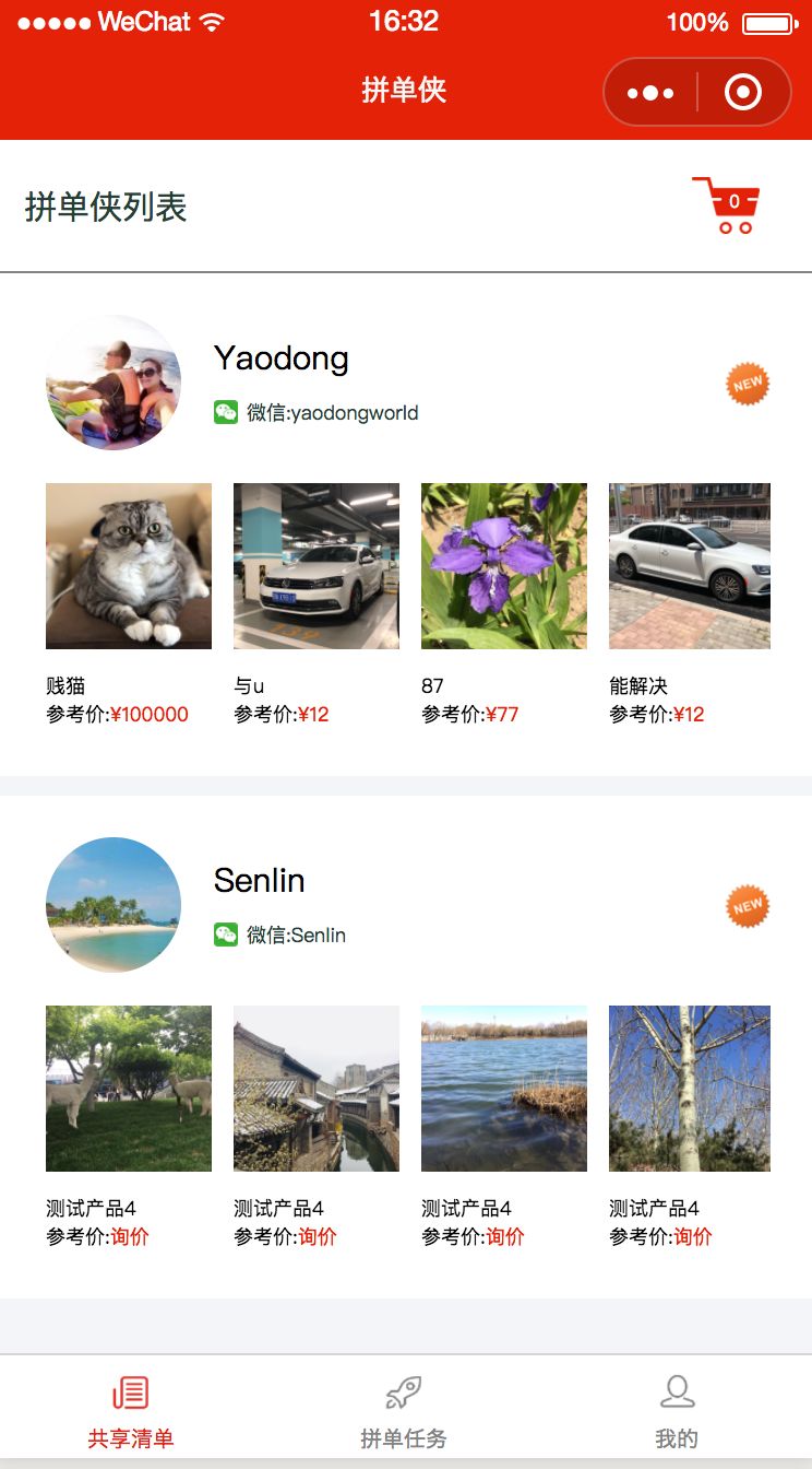下面是用户打开小程序,展示的是平台已有的卖家。