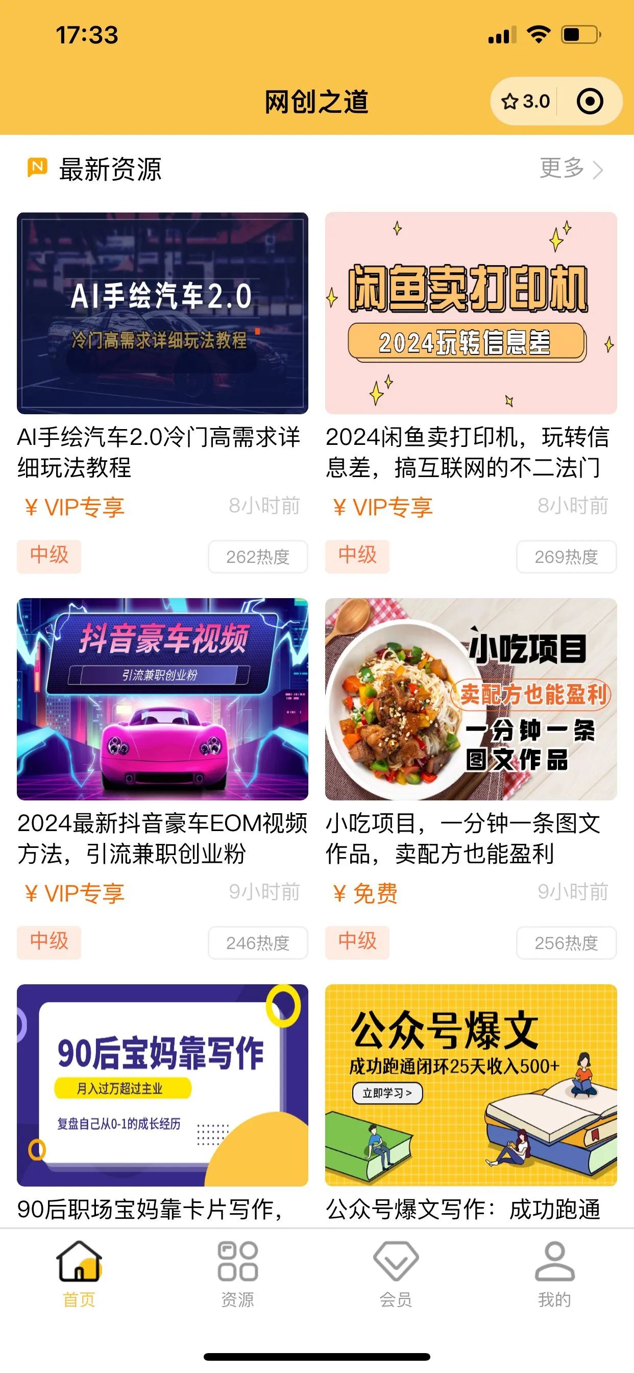 我的小程序做副业资料整理的,用户可以免费或者开通VIP看上面的资料。