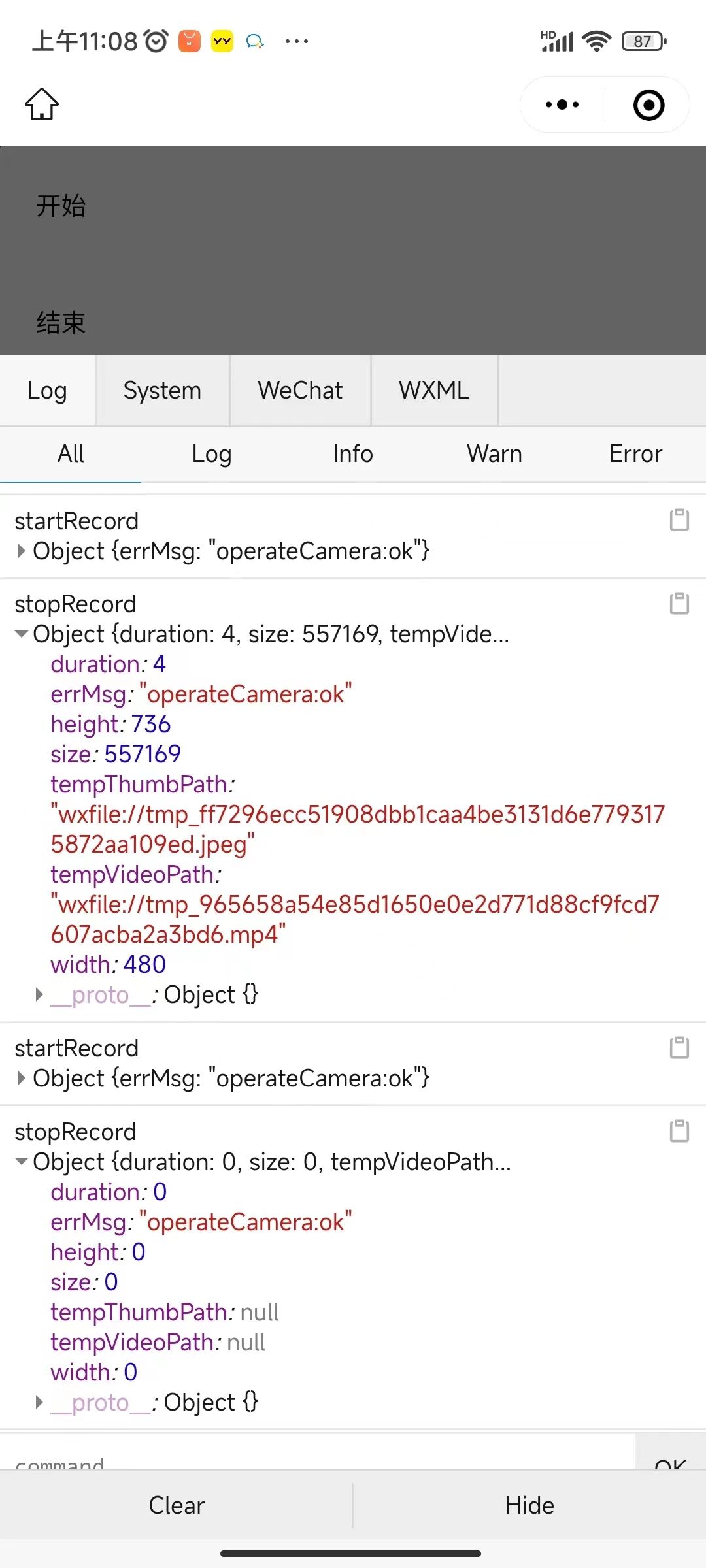 录制大于2s的视频,且开启压缩的前提下,看下是不是首次stopRecord可以返回结果,之后再调用就会走到fail